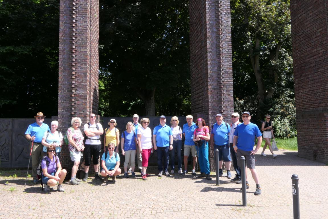 Neun Wanderfreunde trafen sich als B-Gruppe um 12:30 Uhr am Dorfbrunnen und fuhren in Fahrgemeinschaften zum Bahnhof Ober-Ramstadt. Dort nahmen sie den Zug zum Ostbahnhof Darmstadt und gingen dann zur Mathildenhöhe, um dort die A-Gruppe zu treffen.
