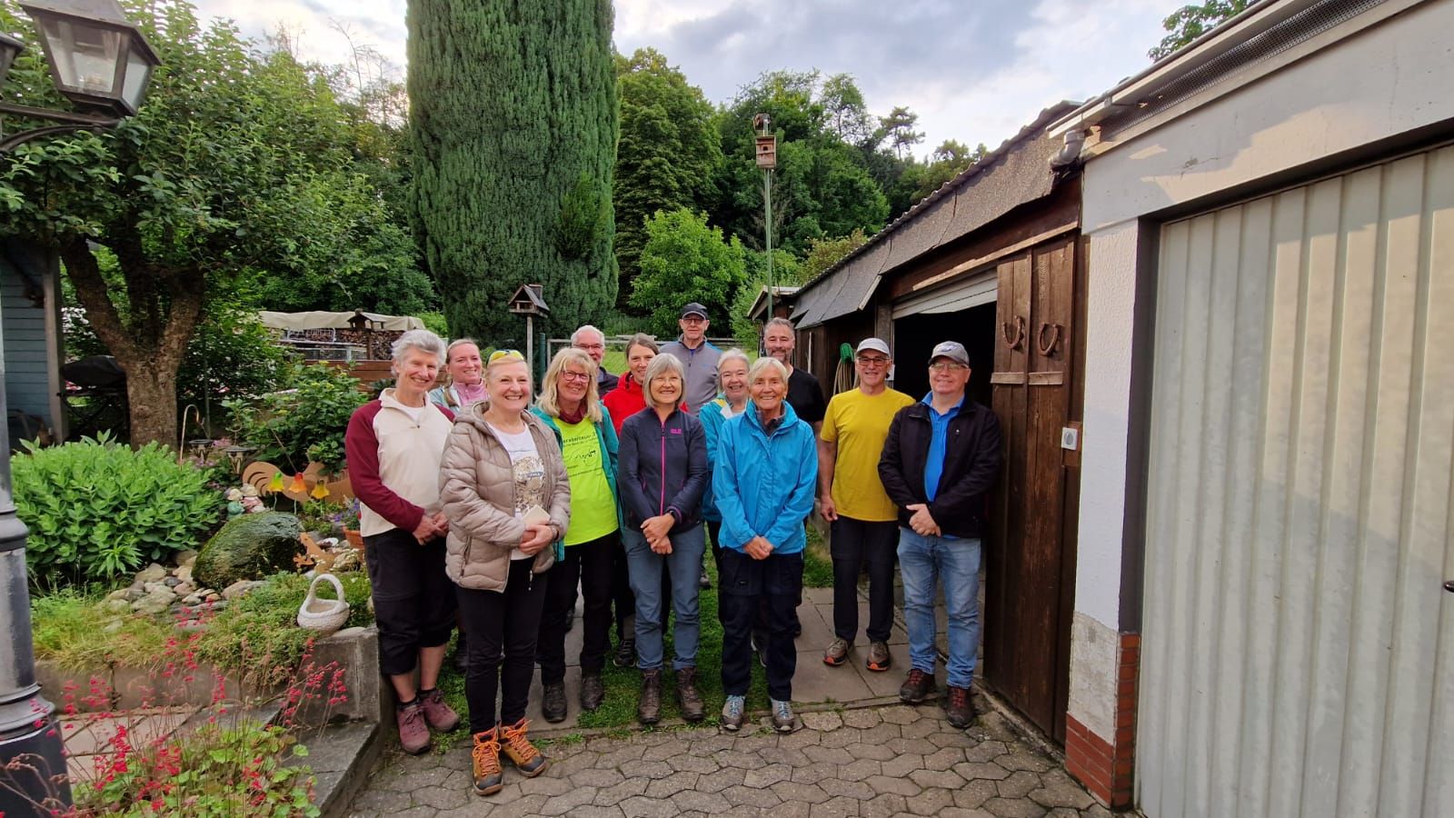 Nach der Mittagspause führte uns unser Weg zum Naturfreundehaus Dieburg (bei km 22). Danach ging es zur Grube Prinz von Hessen (Achtes Gewässer bei km 26,2) und weiter zu den Scheftheimer Wiesen mit Scheftheimer Eiche (bei km 29). Wir machten auch einen kurzen Abstecher zur Menhiranlage bei Rossdorf (bei km 30). Dann ging es zum Ludwigsteich (Neuntes Gewässer, bei km 32,2). Und weiter zum Forsthaus Eiserne Hand (bei km 34,7) und zum Dippelshof (bei km 35). Nun kamen wir an unser letztes Gewässer, den Vogelteich Traisa (Zehntes Gewässer, bei km 36,2). Hier hatten wir unseren Abschluss bei Familie Plößer schon im Blick und freuten uns auf Kochkäse, Brot, Kuchen und natürlich ein kaltes Getränk. Alle sind wohlbehalten in Nieder-Ramstadt angekommen. Auch in der Zeit. Punkt 18:10 Uhr erreichten wir den Hof.