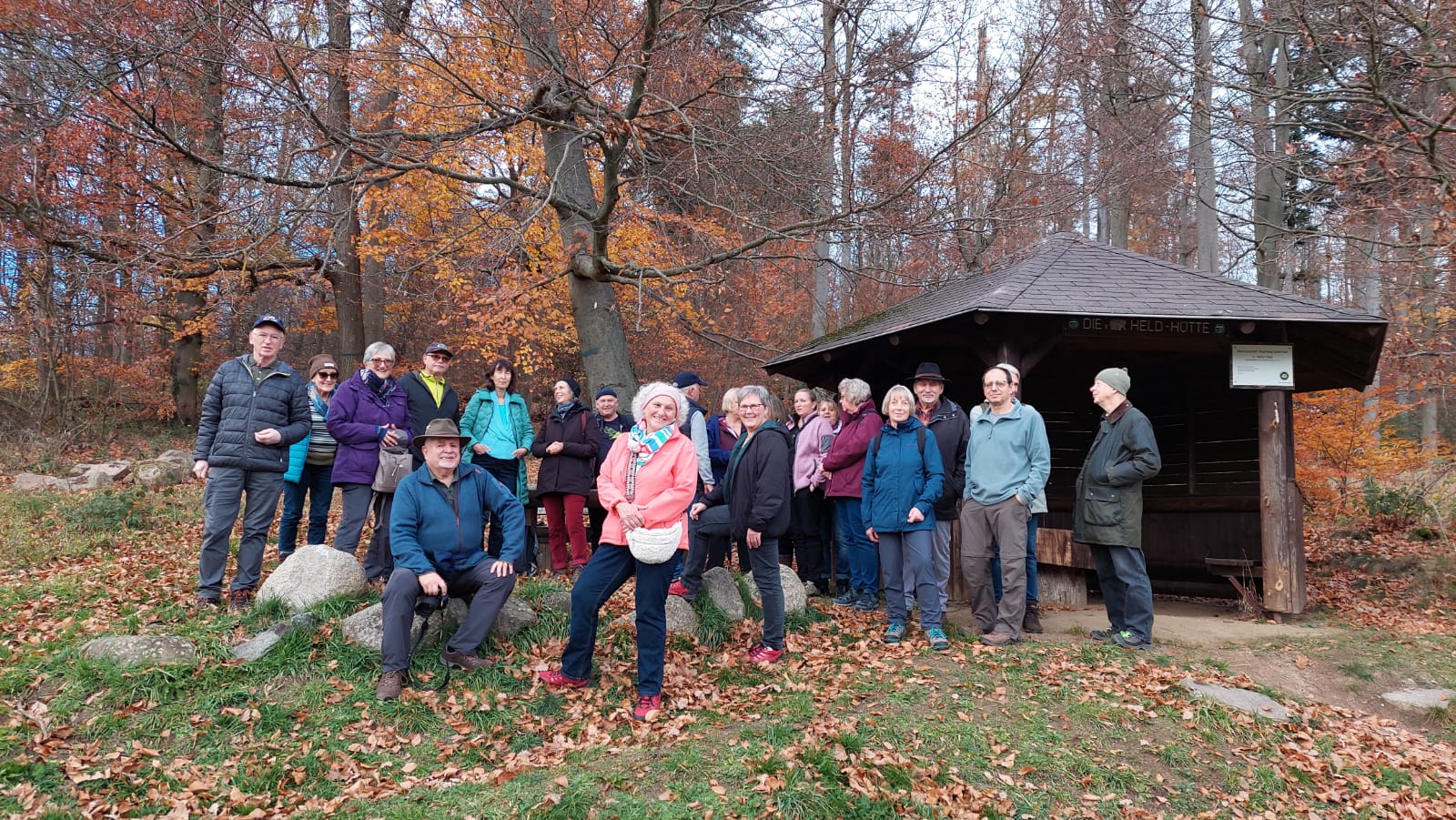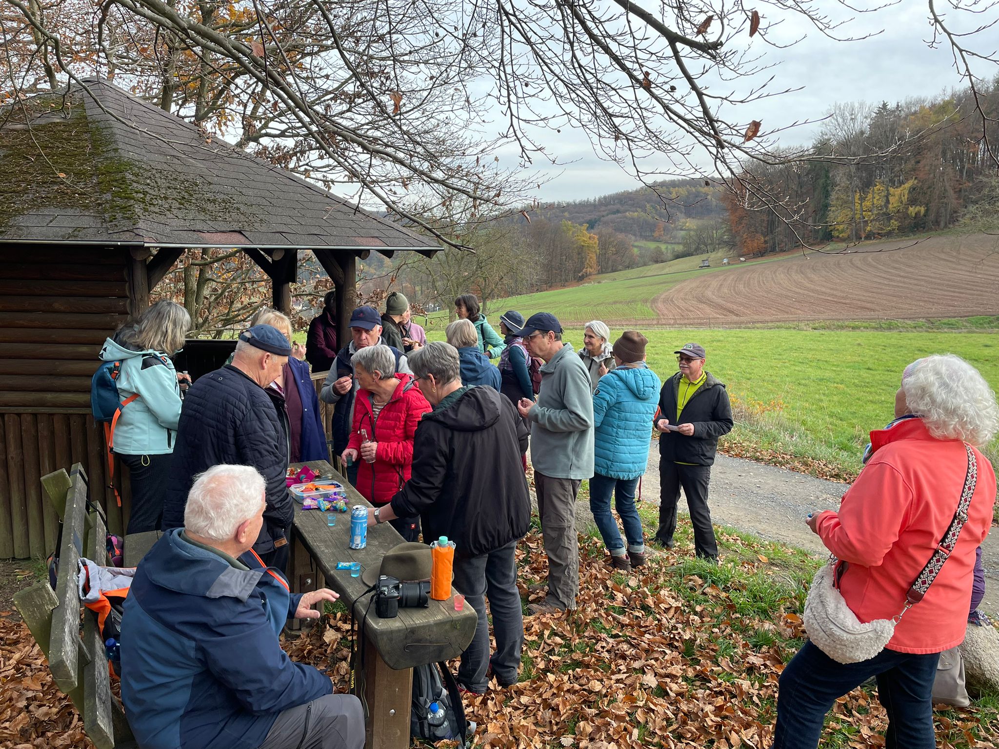 Am 16.11.2025 um 13.45 Uhr trafen sich die Wanderfreunde/innen des OWK Ernsthofen am Dorfbrunnen. In Fahrgemeinschaften fuhren sie nach Lützelbach auf dem Wanderparkplatz, wo man sich mit den restlichen Wanderfreunden/innen und den Gästen traf. Nach der Begrüßung um 14.00Uhr bei schönem Wetter, ging es Richtung Fischbachtal, zur Dieter Held Hütte, wo wir ein kleine Trinkpause einlegten. Ralf Schwerer berichtete über die Entstehung der Hütte und Lützelbachs. Danach ging es über den Wasserleitungsweg nach Lichtenberg vorbei am Alten Lichtenberger Brunnen, der Lichtenberg bis 1890 mit Trinkwasser versorgte. Eine hölzerne Wasserleitung versorgte ab1891 von den Lützelbacher Quellen und führte das Wasser bis zum Schloss. Über den Parkplatz Riedbusch, vorbei am Eselsbrunnern, der auch zur Trinkwasserversorgung Lichtenbergs beitrug, ging es bergab Richtung Campingplatz Odenwaldidylle nach Niedernhausen zum Schützenhof, wo wir nach etwas mehr als 7 Kilometer unser Ziel erreichten. Wir stärkten uns im Schützenhof und fuhren pappe satt und gutgelaunt mit dem Bus nach Lützelbach zurück. Allen hatte es gut gefallen.