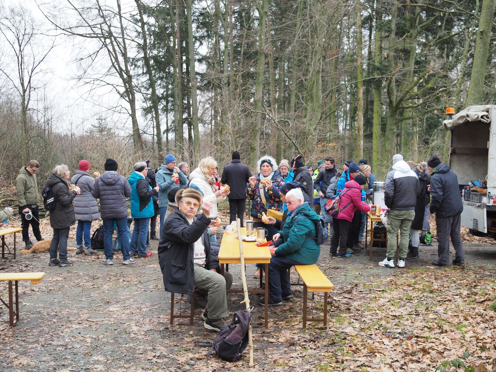 Arne über den Zustand des Waldes und über den Stand der ASP. Vorbei am Friedhof ging es hinauf zum Kreisjugendlager und weiter zum Parkplatz am Neutscher Friedhof. Hier wurden die Wanderer von Manuel Daniel und Katja Bersch-Tartarelli mit Glühwein, Punsch kalten Getränke sowie Würstchen empfangen. Nach der Stärkung ging es weiter an der Gasleitung Richtung Herchenrode und über den krummen Weg zurück nach Ernsthofen. Ausklang war dann in der Festhalle.